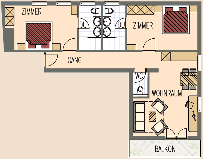 2 x Doppelzimmer mit jeweils Dusche/WC