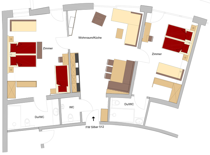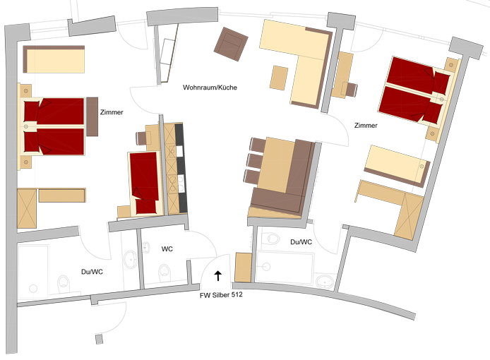 Grundriss Appartement Silber - max. 9 Personen, ca. 93 m²